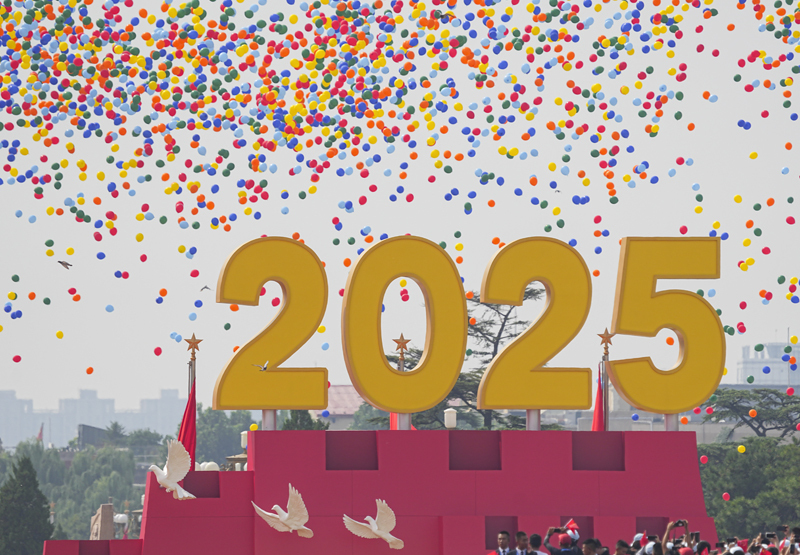 9月3日,紀念中國人民抗日戰(zhàn)爭暨世界反法西斯戰(zhàn)爭勝利80周年大會在北京隆重舉行。這是紀念大會現(xiàn)場放飛氣球。