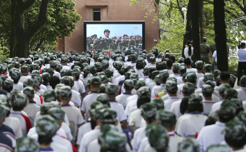 9月3日,廣東省鶴山市第一中學(xué)的師生在觀看紀(jì)念中國(guó)人民抗日戰(zhàn)爭(zhēng)暨世界反法西斯戰(zhàn)爭(zhēng)勝利80周年大會(huì)直播。