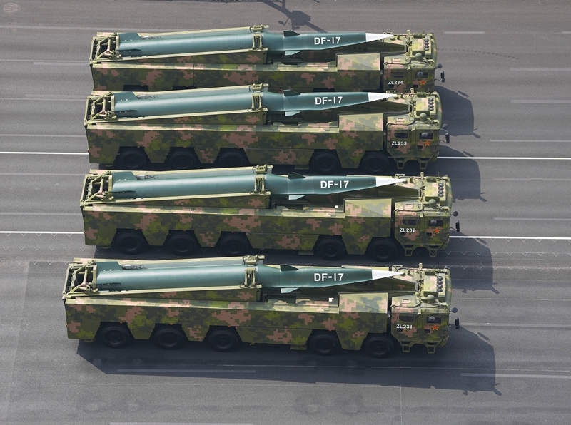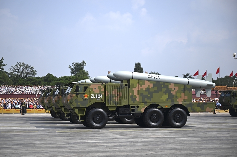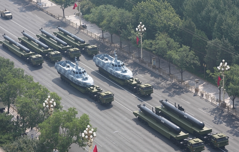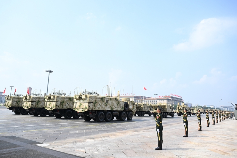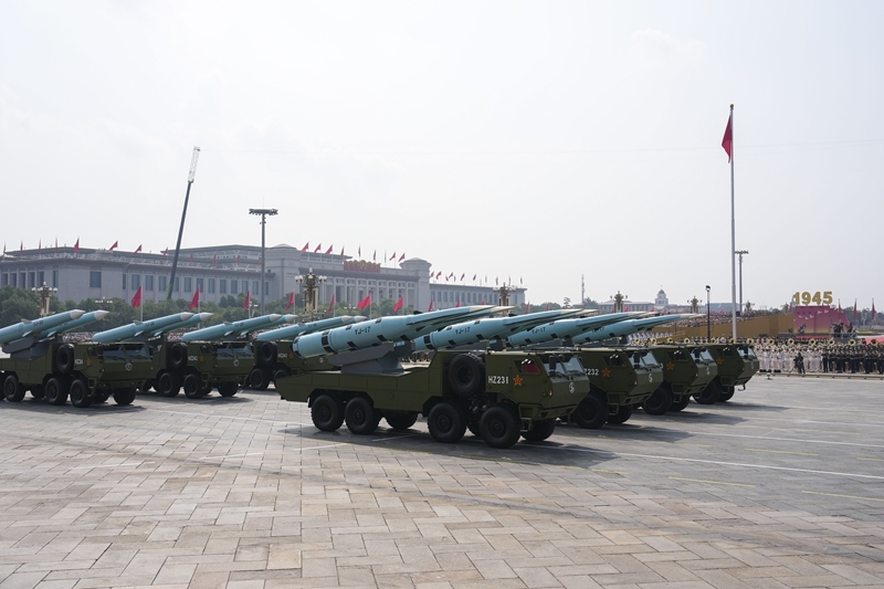 9月3日,紀(jì)念中國人民抗日戰(zhàn)爭暨世界反法西斯戰(zhàn)爭勝利80周年大會(huì)在北京隆重舉行。這是高超聲速導(dǎo)彈方隊(duì)接受檢閱。