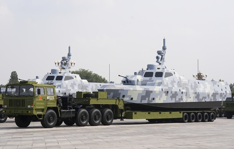 9月3日,紀(jì)念中國人民抗日戰(zhàn)爭暨世界反法西斯戰(zhàn)爭勝利80周年大會(huì)在北京隆重舉行。這是海上無人作戰(zhàn)方隊(duì)接受檢閱。