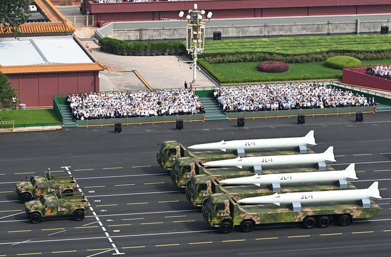 9月3日,紀(jì)念中國人民抗日戰(zhàn)爭暨世界反法西斯戰(zhàn)爭勝利80周年大會(huì)在北京隆重舉行。這是核導(dǎo)彈第一方隊(duì)接受檢閱。