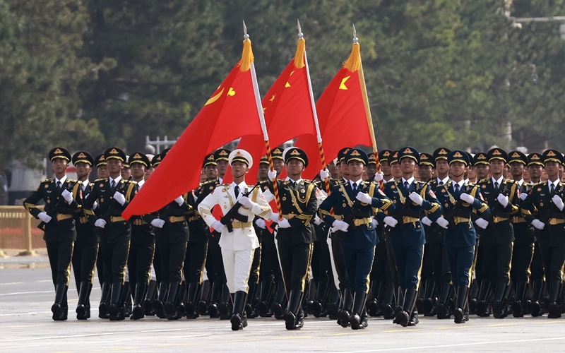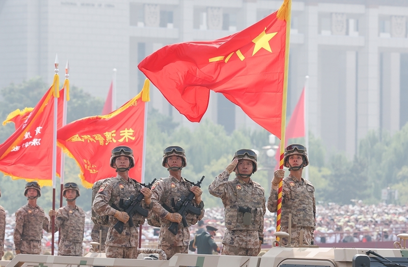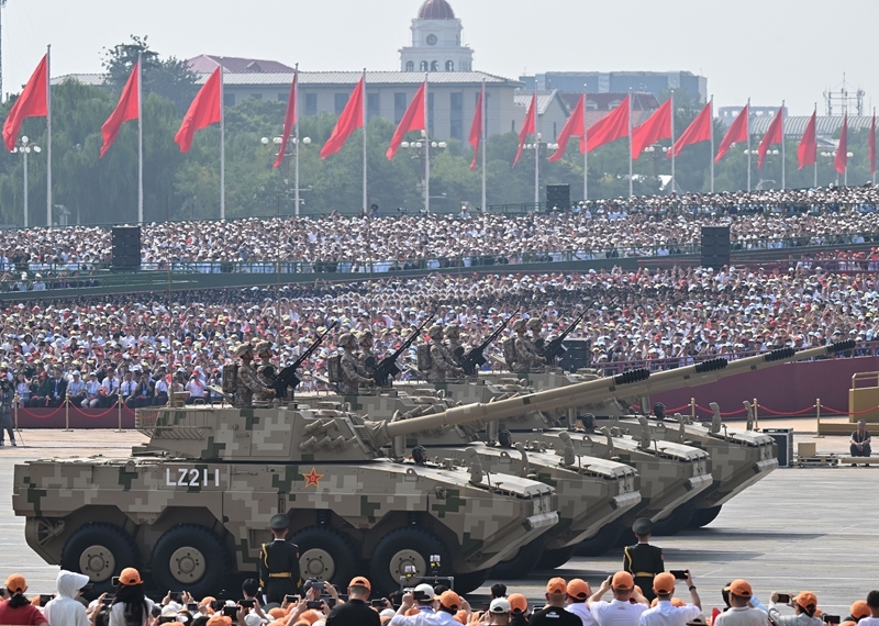 9月3日,紀(jì)念中國人民抗日戰(zhàn)爭暨世界反法西斯戰(zhàn)爭勝利80周年大會(huì)在北京隆重舉行。這是儀仗方隊(duì)接受檢閱。