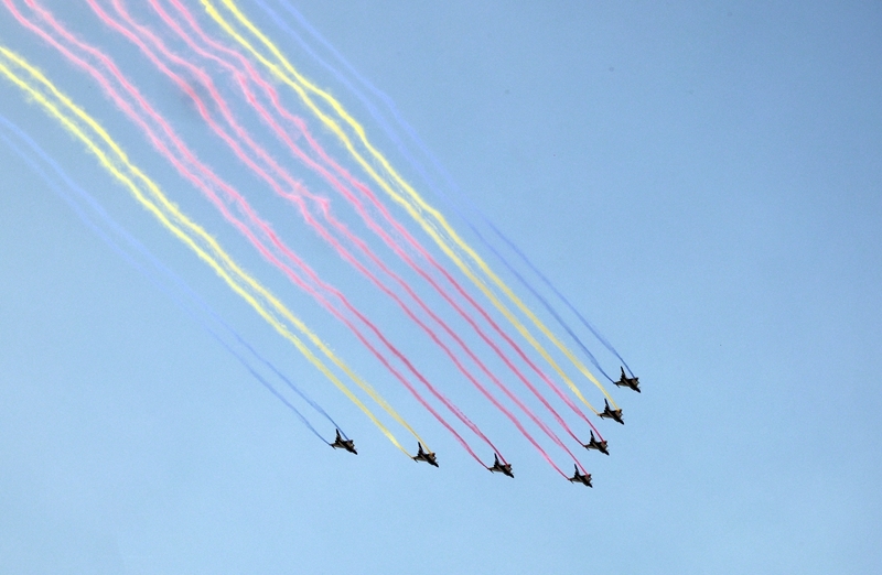 9月3日,紀(jì)念中國人民抗日戰(zhàn)爭暨世界反法西斯戰(zhàn)爭勝利80周年大會(huì)在北京隆重舉行。這是教練機(jī)梯隊(duì)接受檢閱。