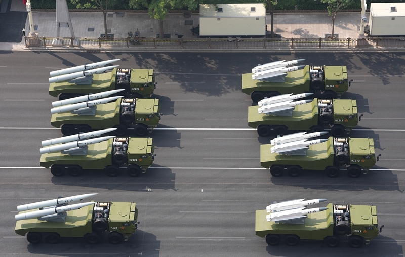 9月3日,紀(jì)念中國人民抗日戰(zhàn)爭暨世界反法西斯戰(zhàn)爭勝利80周年大會(huì)在北京隆重舉行。這是反艦導(dǎo)彈方隊(duì)接受檢閱。