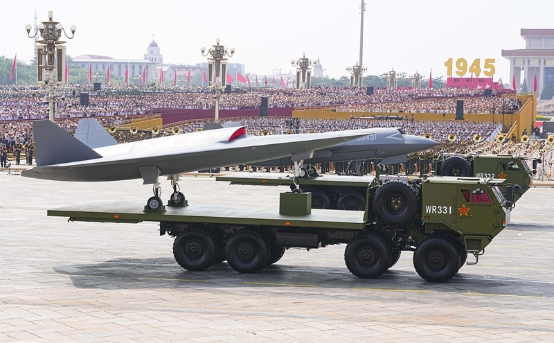 9月3日,紀(jì)念中國人民抗日戰(zhàn)爭暨世界反法西斯戰(zhàn)爭勝利80周年大會(huì)在北京隆重舉行。這是空中無人作戰(zhàn)方隊(duì)接受檢閱。