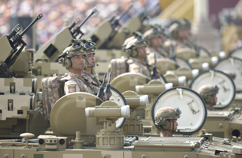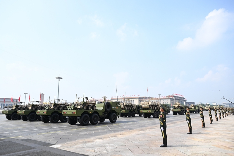 9月3日,紀(jì)念中國人民抗日戰(zhàn)爭暨世界反法西斯戰(zhàn)爭勝利80周年大會(huì)在北京隆重舉行。這是信息支援方隊(duì)接受檢閱。