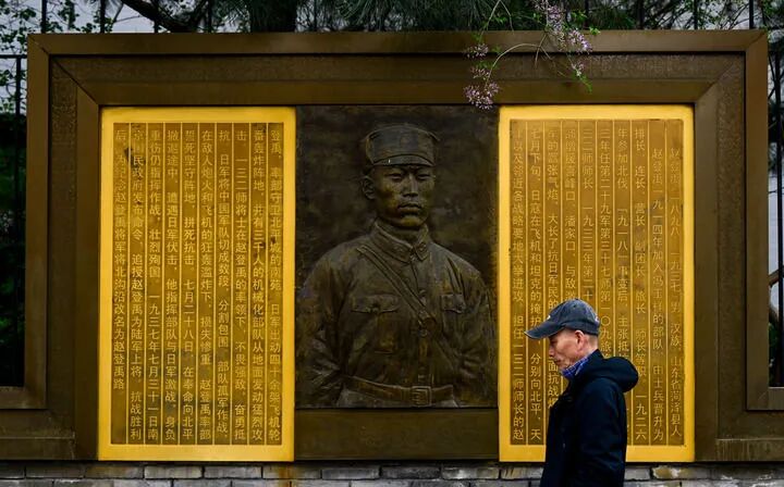 3月26日在北京市西城區(qū)趙登禹路,市民從趙登禹將軍英雄事跡主題浮雕前走過。新華社記者 劉金海 攝