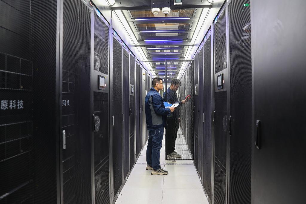 2025年8月23日,中聯(lián)數(shù)據(jù)集團(tuán)山西公司工作人員在操作電子平臺(tái)。新華社記者 柴婷 攝