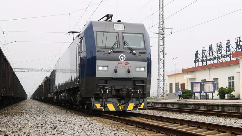 9月4日,一列火車駛進欽州港東站轉(zhuǎn)運集裝箱。