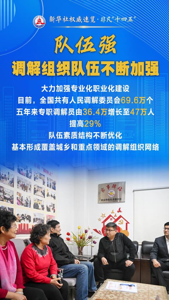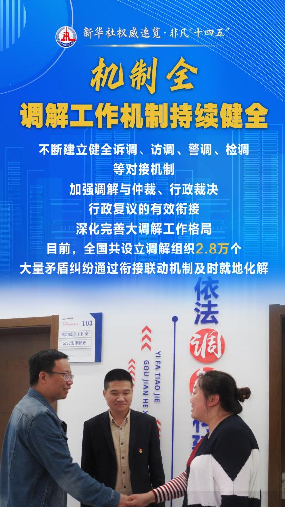 “十四五”期間,司法部堅(jiān)持和發(fā)展新時(shí)代“楓橋經(jīng)驗(yàn)”,充分發(fā)揮調(diào)解職能作用,以“機(jī)制全、領(lǐng)域廣、隊(duì)伍強(qiáng)、效果實(shí)”十二字為工作“秘訣”,大力加強(qiáng)矛盾糾紛排查化解,切實(shí)保障群眾合法權(quán)益,維護(hù)社會和諧穩(wěn)定。