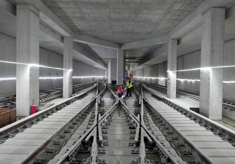 9月9日,工人在石家莊地鐵4號線一期工程東垣東路站建設(shè)工地施工。
