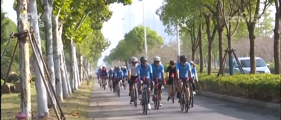 除了打卡快閃店,到戶外來(lái)一場(chǎng)騎行也是假期里不錯(cuò)的選擇。在江蘇啟東,騎行愛(ài)好者們身著專業(yè)騎行服,穿梭于城市之間,一邊鍛煉一邊欣賞沿途美麗的秋景。