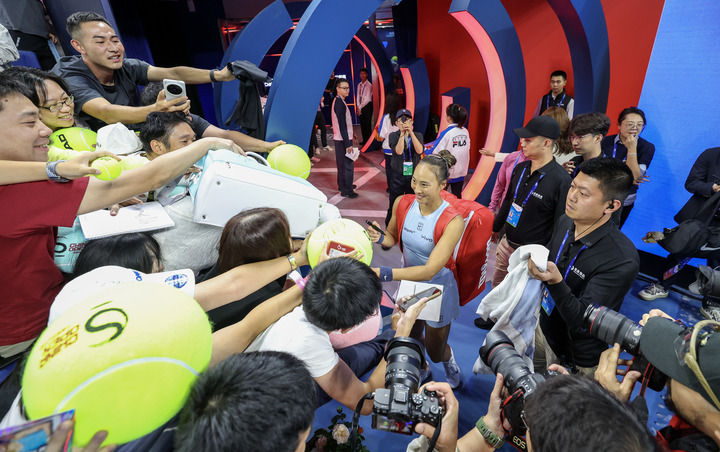 今年中網(wǎng),中國(guó)“金花”鄭欽文的傷愈回歸備受期待。9月27日,鄭欽文迎來(lái)復(fù)出后的首場(chǎng)比賽,現(xiàn)場(chǎng)上座率超過(guò)九成,當(dāng)日國(guó)家網(wǎng)球中心入園人數(shù)超4.5萬(wàn)人次,創(chuàng)下中網(wǎng)賽事歷史新高。雖然鄭欽文在女單第三輪因傷退賽,但中國(guó)球員近年來(lái)在國(guó)際賽場(chǎng)的持續(xù)突破,已在中國(guó)掀起一股網(wǎng)球文化熱潮。“十一”期間,中網(wǎng)上座率保持高位,吸引天南地北的球迷齊聚京城,共襄網(wǎng)球盛宴。