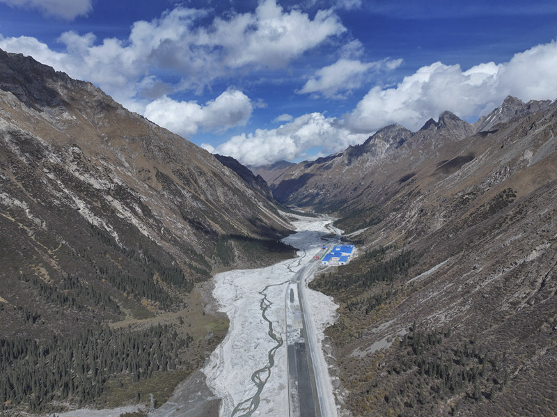 這是10月5日在新疆昭蘇縣拍攝的昭溫公路西天山特長隧道進口端及附近施工現(xiàn)場(無人機照片)。該隧道為全線關(guān)鍵控制性工程,全長15.707千米,由北向南穿越天山山脈。