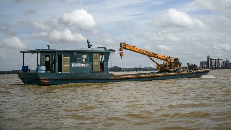 10月7日,一艘修補(bǔ)船開往茅尾海修補(bǔ)受損蠔排。