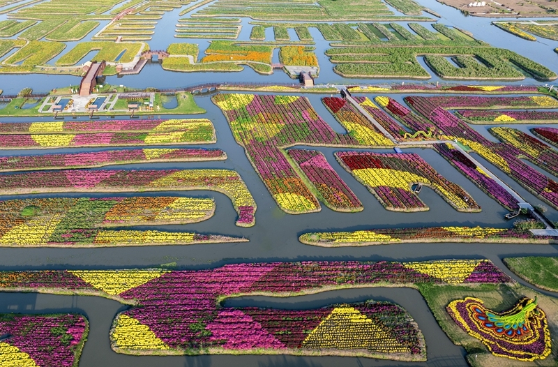 10月11日拍攝的江蘇省興化市千垛景區(qū)菊花盛開的美景(無人機照片)。