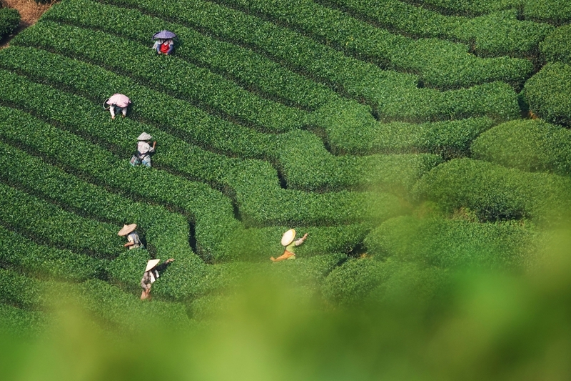 10月11日,茶農在廣西昭平縣大腦山生態(tài)茶園采摘晚秋茶。