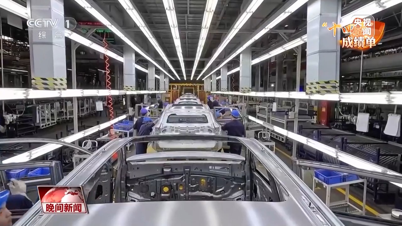 在廣州,新能源汽車的燈塔工廠里,1條生產線上可以同時生產8款不同的車型,下線一輛定制化的車輛僅需53秒;