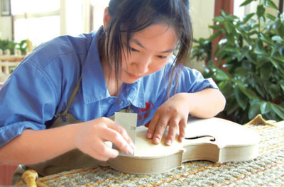 陳鳳軍身后的墻上,懸掛著一幅世界著名制琴大師斯特拉迪瓦里所制作的老琴圖片。閑暇時,他總會抬頭凝視,仔細研究它的每一處細節(jié)?!耙话迅纫话押?,做琴是永遠學不完的”,如今他已經(jīng)斬獲了多項國際制琴比賽專業(yè)大獎。