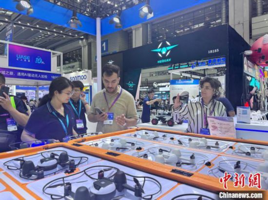 國外采購商咨詢新型無人機(jī)。 記者 索有為 攝