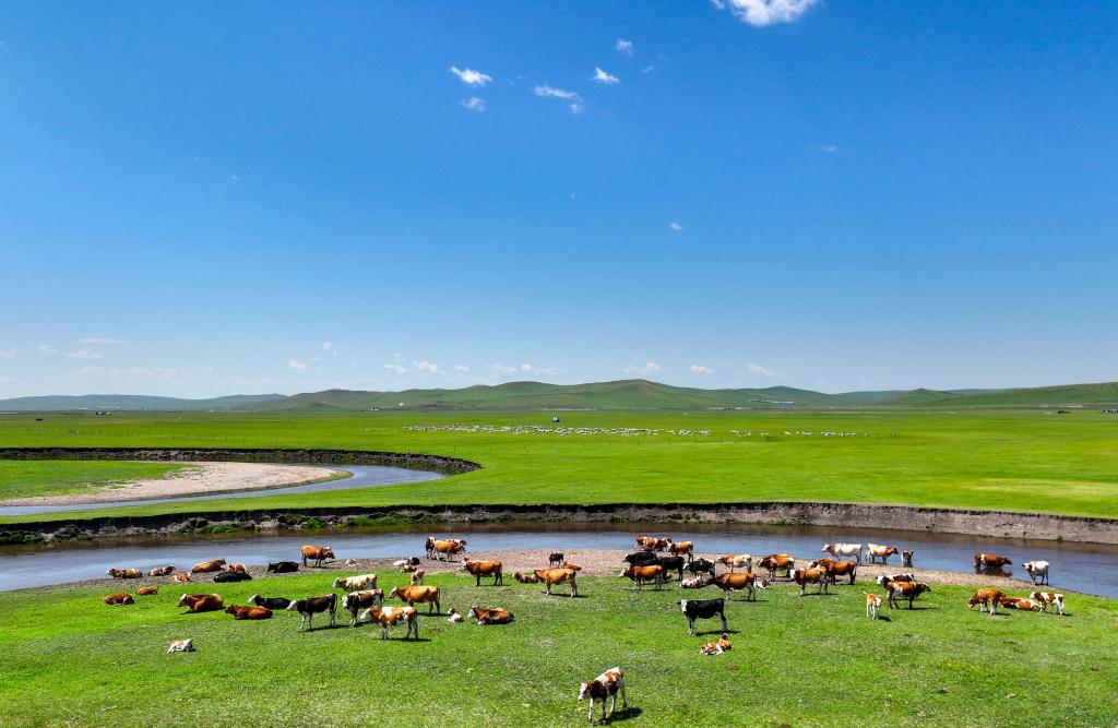 以“曲”聞名天下的莫爾格勒河發(fā)源于內(nèi)蒙古自治區(qū)呼倫貝爾市陳巴爾虎旗境內(nèi),全長319公里。盛夏時(shí)節(jié),迂回輾轉(zhuǎn)的河道、低垂的云影、成群的牛羊共同構(gòu)成一幅宛如油畫般的草原風(fēng)情畫卷。