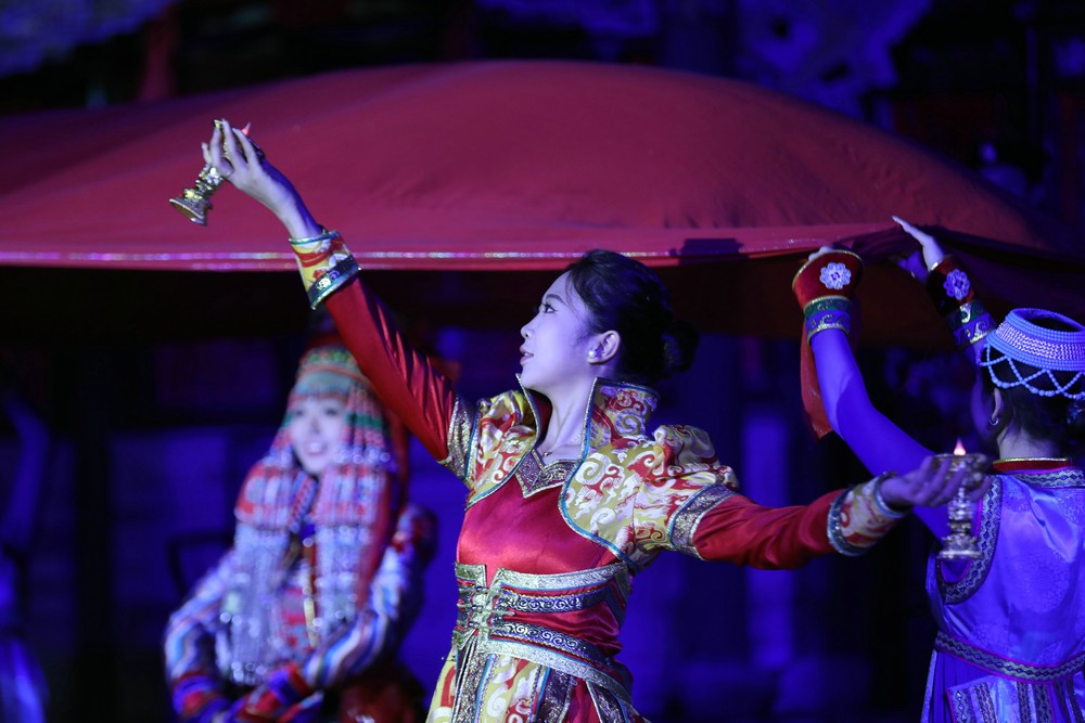 該劇將郡王府作為舞臺,以立體場景為襯托,將鄂爾多斯婚禮等融入其中,頂碗舞、筷子舞、酒盅舞等舞蹈形式穿插,精妙的設計、精彩的舞蹈和跌宕的劇情,既再現了歷史,也展現了郡王府悠久的歷史文化以及伊金霍洛旗豐富的文旅資源和獨特的文化魅力。