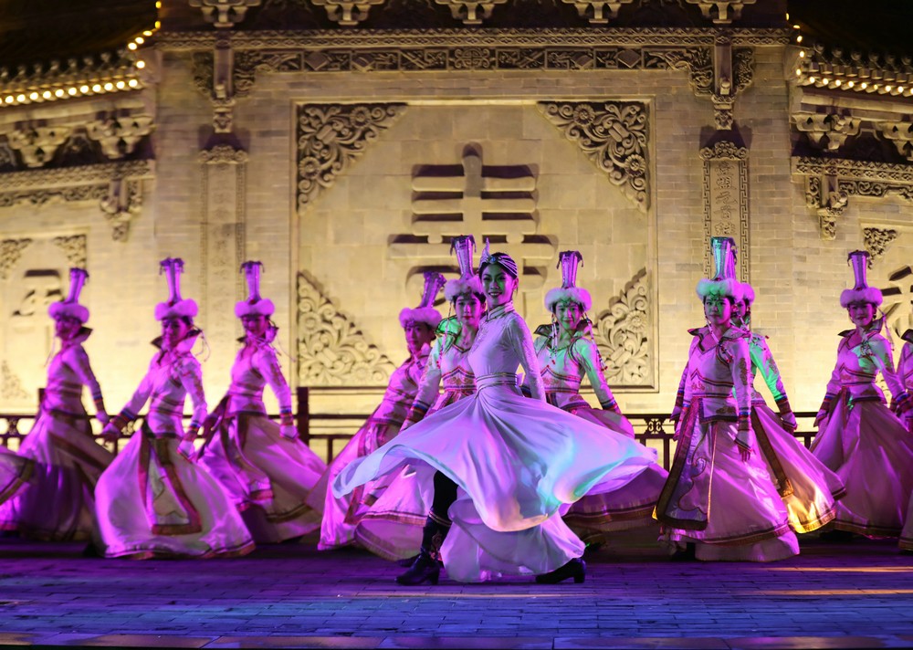 歡快的音樂聲響起,一群演員衣袂飄飄,在變幻的燈光下翩翩起舞,現場觀眾沉浸其中,隨著舞者的腳步,步入郡王府內,與演員們一起,回溯歷史,見證變遷。
