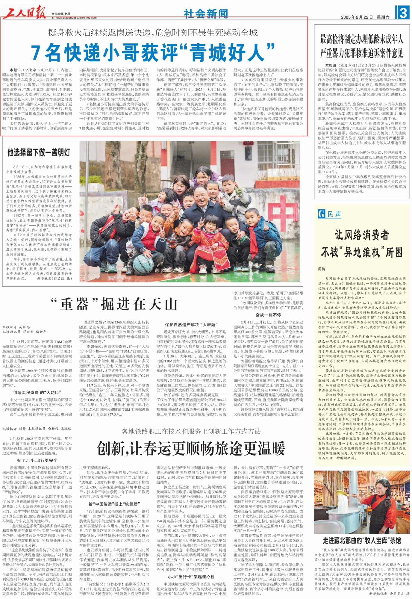 2025年2月22日,《工人日報(bào)》第3版刊發(fā)題為《挺身救火后繼續(xù)返崗送快遞,危急時(shí)刻不畏生死感動全城 7名快遞小哥獲評“青城好人”》的文章,報(bào)道了內(nèi)蒙古自治區(qū)呼和浩特市7位快遞小哥挺身救火,在消防車趕到之前成功控制了火源,確保無人員傷亡,并避免了更大的財(cái)產(chǎn)損失。