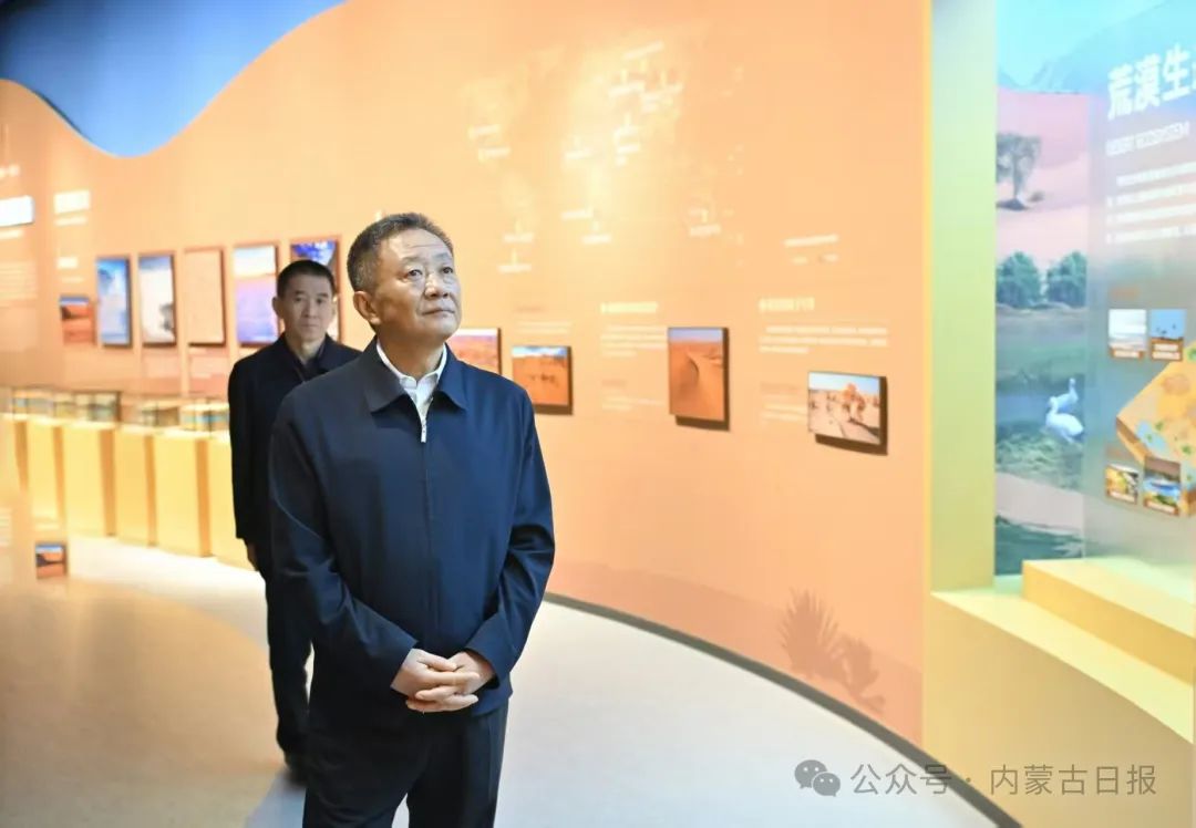 5月11日,自治區(qū)黨委書記孫紹騁在恩格貝沙漠博物館參觀,詳細了解荒漠化綜合防治的歷史沿革、理論成果和實踐經(jīng)驗。草原云·內(nèi)蒙古新聞網(wǎng)記者 馬建兵