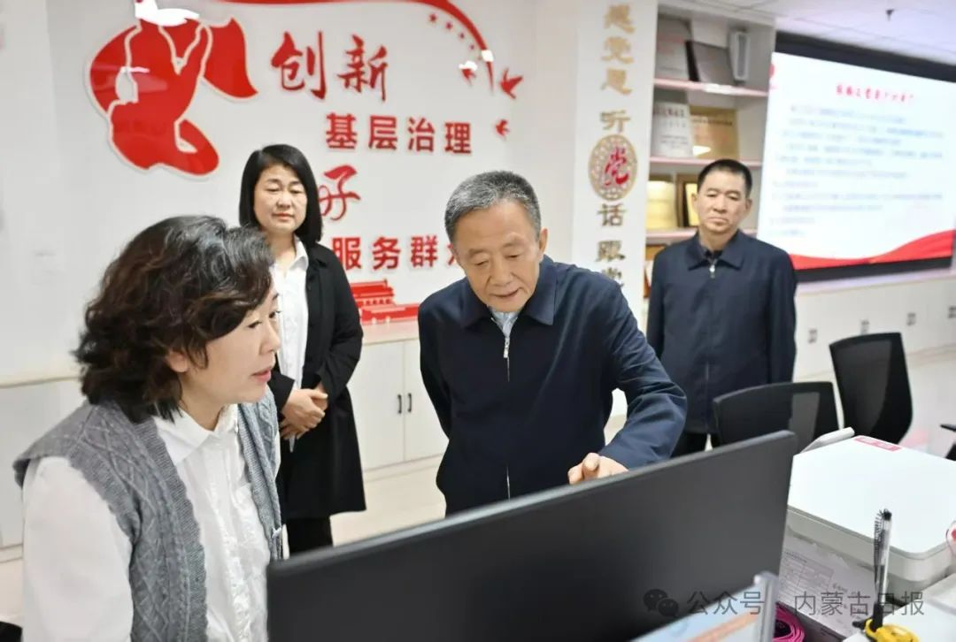 5月13日,自治區(qū)黨委書記孫紹騁走進臨河區(qū)金川街道江林社區(qū)便民服務大廳和黨群服務中心,同社區(qū)工作人員深入交流,了解社區(qū)工作內容和減負效果。草原云·內蒙古新聞網記者 馬建兵 攝