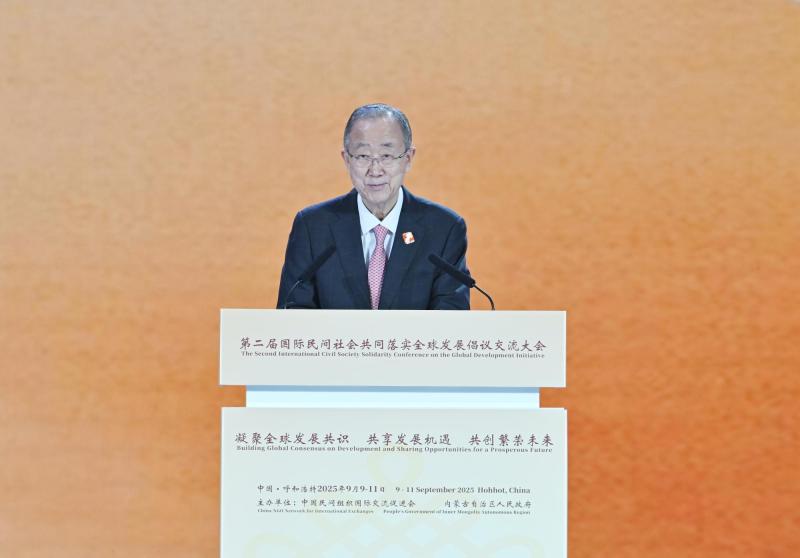 9月10日,聯(lián)合國(guó)第八任秘書(shū)長(zhǎng)潘基文在第二屆國(guó)際民間社會(huì)共同落實(shí)全球發(fā)展倡議交流大會(huì)開(kāi)幕式上致辭。草原云·內(nèi)蒙古新聞網(wǎng)記者 馬建兵 攝