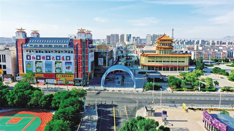 紅山區(qū)新華步行街航拍。 紅山區(qū)融媒體中心供圖