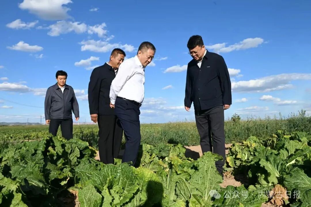 9月23日,自治區(qū)黨委書記孫紹騁在五原縣塔爾湖鎮(zhèn)繼光村察看災(zāi)后補種農(nóng)作物長勢,深入了解救災(zāi)情況。草原云·內(nèi)蒙古新聞網(wǎng)記者 馬建兵 攝
