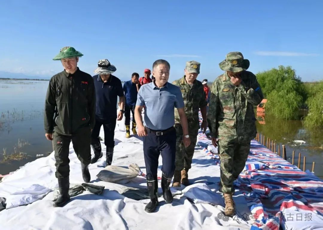 8月19日,自治區(qū)黨委書記孫紹騁深入土默特右旗,現(xiàn)場(chǎng)檢查指導(dǎo)防汛救災(zāi)工作,看望搶險(xiǎn)救災(zāi)和巡堤值守一線人員?! ?/p>