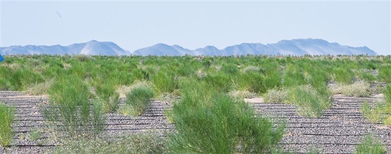“這里是內(nèi)蒙古阿拉善盟西部荒漠綜合治理項目(二期)額濟納河片區(qū),是內(nèi)蒙古深入貫徹落實國家生態(tài)戰(zhàn)略、打贏河西走廊—塔克拉瑪干沙漠邊緣阻擊戰(zhàn)關鍵戰(zhàn)場之一。我們在這里人工種草6萬畝,現(xiàn)在已經(jīng)全部完成栽種,正在進行養(yǎng)護工作?!鳖~濟納河片區(qū)負責人關新偉介紹,項目由阿拉善盟林業(yè)和草原局推進,中國建筑一局有限公司、中鐵四局集團有限公司等承建,額濟納旗林業(yè)和草原局為項目建設提供技術(shù)支撐。