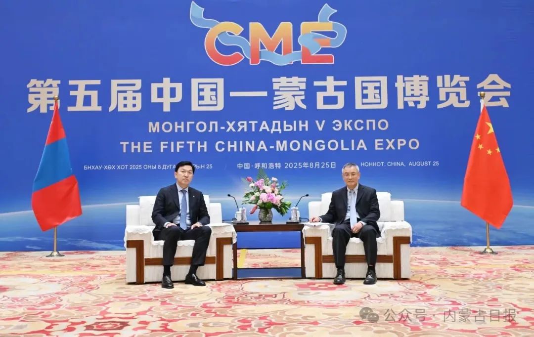 8月24日,全國(guó)人大常委會(huì)副委員長(zhǎng)、民進(jìn)中央主席蔡達(dá)峰在呼和浩特會(huì)見(jiàn)前來(lái)出席第五屆中國(guó)—蒙古國(guó)博覽會(huì)的蒙古國(guó)第一副總理兼經(jīng)濟(jì)發(fā)展部部長(zhǎng)烏其爾勒一行。自治區(qū)黨委書(shū)記孫紹騁參加會(huì)見(jiàn)。