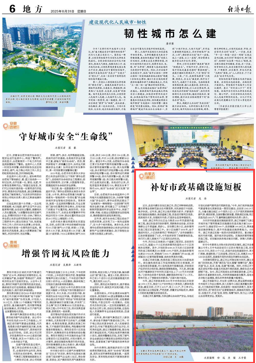2025年8月31日,《經(jīng)濟(jì)日報》第6版刊發(fā)題為《補好市政基礎(chǔ)設(shè)施短板》的文章,報道了近年來,通遼市以城市更新為抓手,不斷提升城市基礎(chǔ)設(shè)施建設(shè),推進(jìn)溫暖工程,改造老舊管網(wǎng)及危房,疏浚城市水系,治理城市內(nèi)澇,打造安全宜居幸福城市。