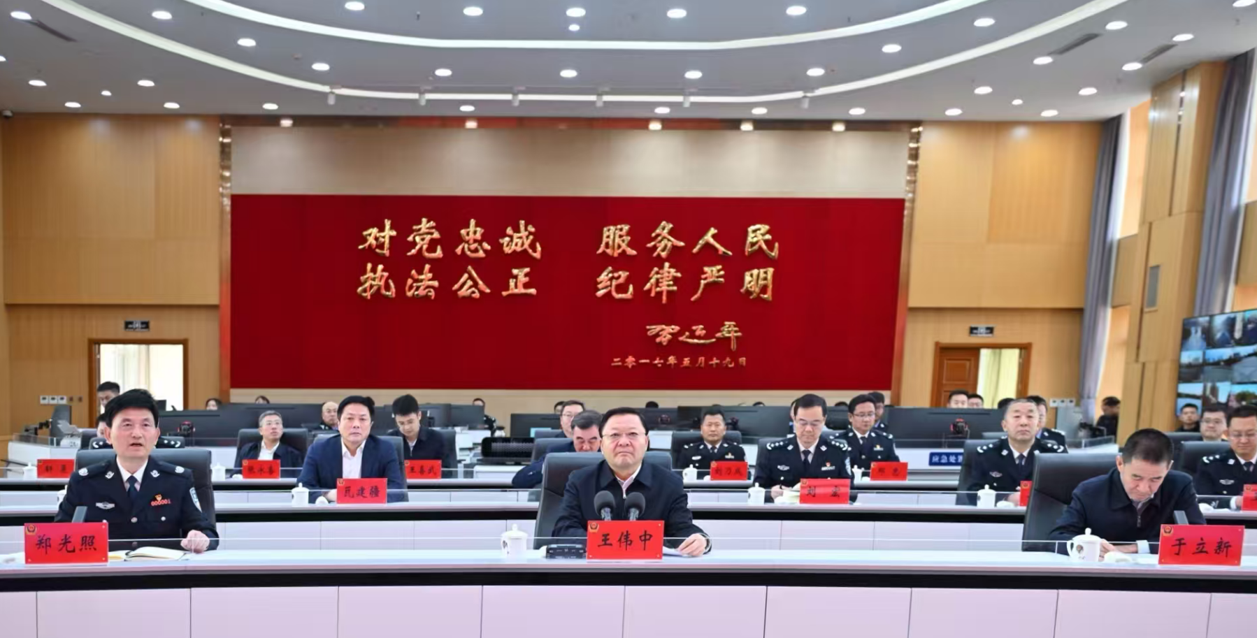 在自治區(qū)公安廳,王偉中參觀了情報指揮中心并視頻連線二連浩特口岸、赤峰旺業(yè)甸公安檢查站、呼和浩特大召廣場執(zhí)勤點,了解公安廳“情指行”一體化運行機制和相關(guān)工作情況。他指出,要深入貫徹“對黨忠誠、服務(wù)人民、執(zhí)法公正、紀律嚴明”的總要求,牢牢把握我區(qū)作為邊疆民族地區(qū)的實際,嚴厲打擊違法犯罪,有效防范化解矛盾糾紛和風險隱患,嚴格規(guī)范公正文明執(zhí)法,為建設(shè)更高水平的平安內(nèi)蒙古貢獻力量。