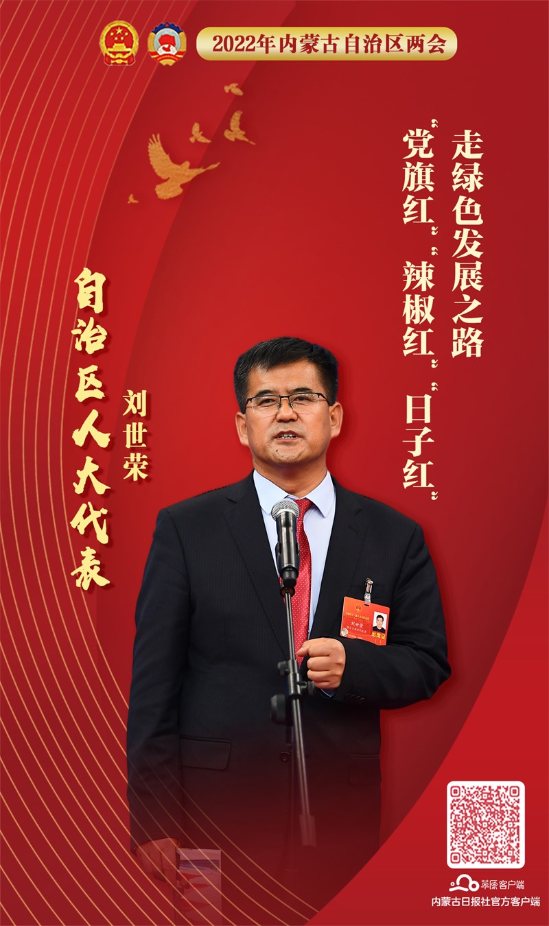 從昔日的沙窩窩到成為如今遠(yuǎn)近聞名的美麗鄉(xiāng)村,自治區(qū)人大代表、鄂爾多斯市達(dá)拉特旗展旦召蘇木道勞村黨支部書記、村委會(huì)主任劉世榮和大家分享了23年來(lái),道勞村是怎樣推動(dòng)農(nóng)畜產(chǎn)品生產(chǎn)基地優(yōu)質(zhì)高效轉(zhuǎn)型,走出一條符合道勞實(shí)際的綠色發(fā)展之路的。他用“三個(gè)紅、一個(gè)綠”描述了今天的道勞村,即“黨旗紅”“辣椒紅”“日子紅”,走綠色發(fā)展之路。
